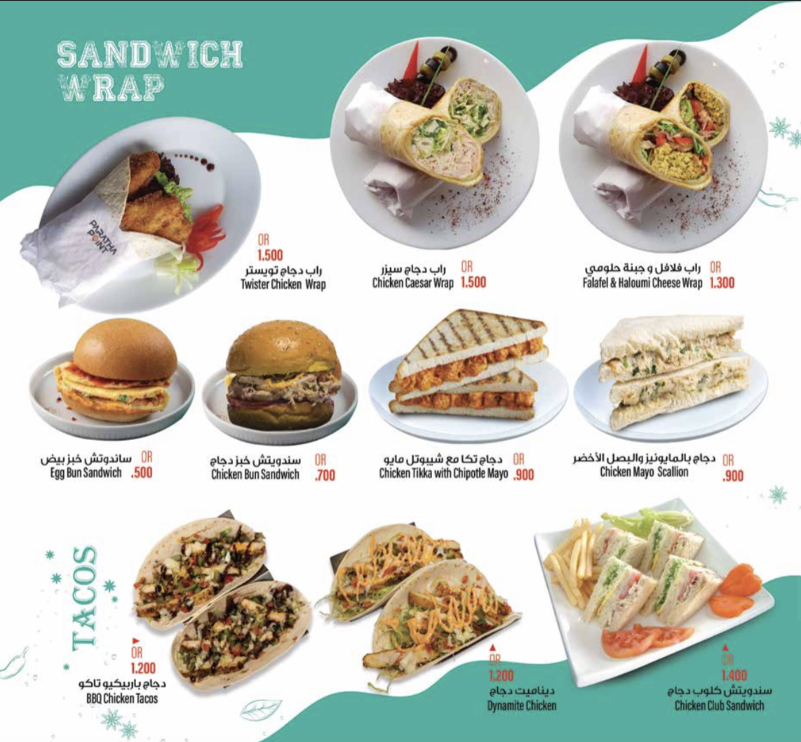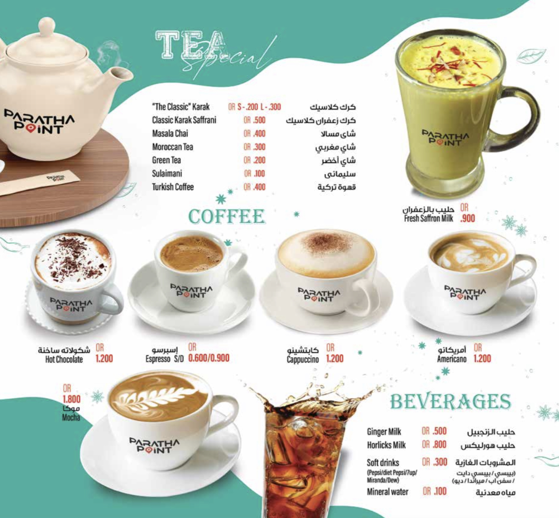 Paratha Point - Al Hail North ; 'Best Cafe in Oman' Menu